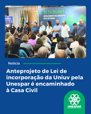 Durante a ocasião, foi anunciado o envio à Casa Civil do anteprojeto de lei que trata da incorporação da Uniuv pela Unespar, para análise e aprovação. A notícia foi recebida com entusiasmo pelo público que prestigiou o evento.