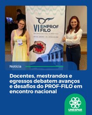 A representante discente do PROF-FILO de União da Vitória, que acompanhou a docente, é Rafaela Larissa Rodrigues, que fará uma apresentação de pesquisa em sessão específica.