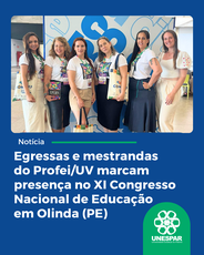 Entre os dias 3 e 5 de outubro, o Campus de União da Vitória da Universidade Estadual do Paraná (Unespar) foi representado no XI Conedu (Congresso Nacional de Educação), realizado em Olinda (PE), por egressas e pós-graduandas do Mestrado Profissional em Educação Inclusiva (Profei/UV).