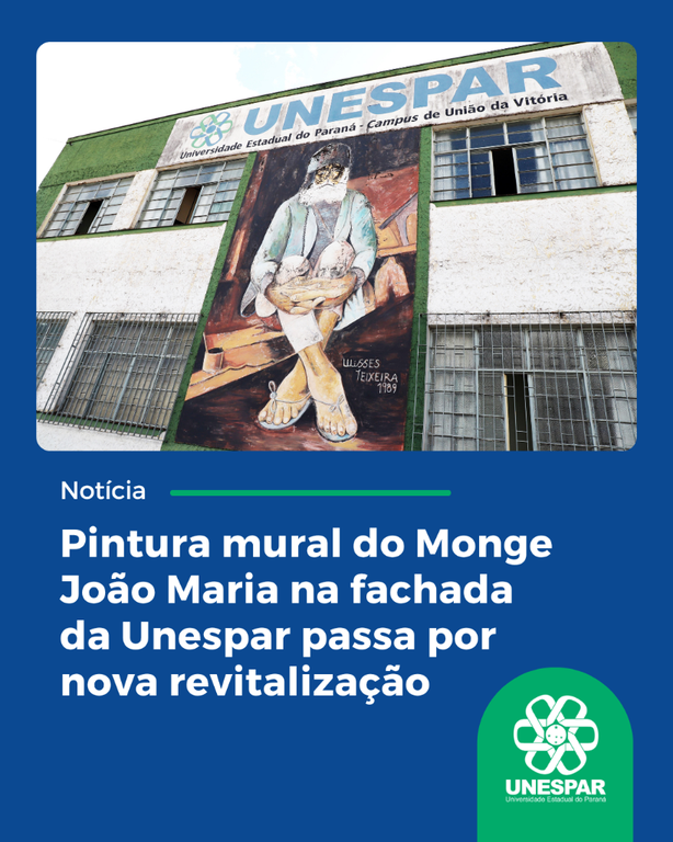 Pintura mural do Monge João Maria na fachada da Unespar passa por nova revitalização