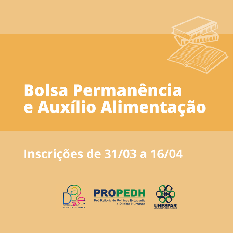 Programa Especial de Bolsas Permanência e Auxílio Alimentação 2023 - inscrições abertas de 31 de março a 16 de abril